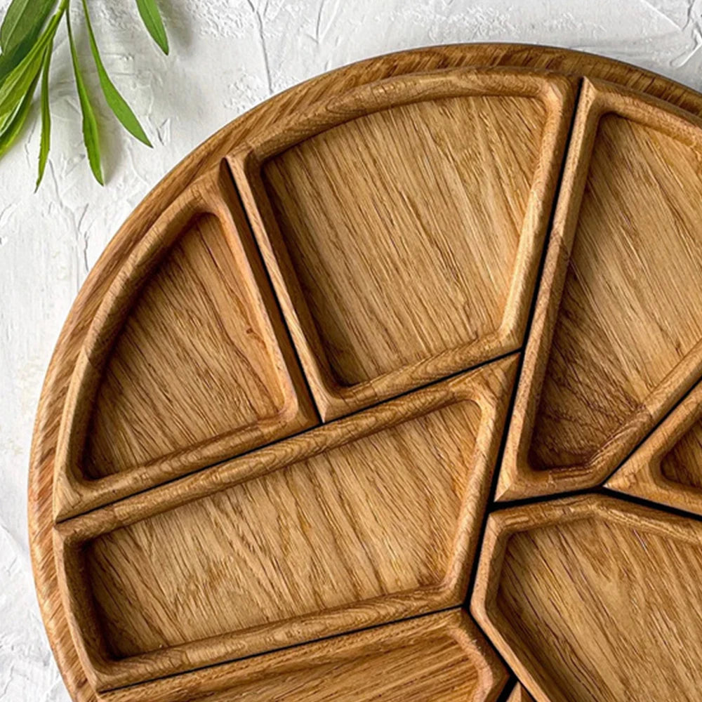 8-Petal Wooden Split Tray – Multi-Section Serving Plate