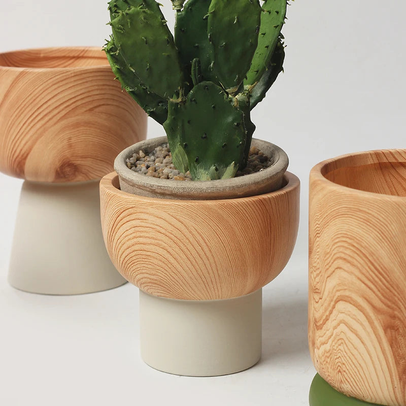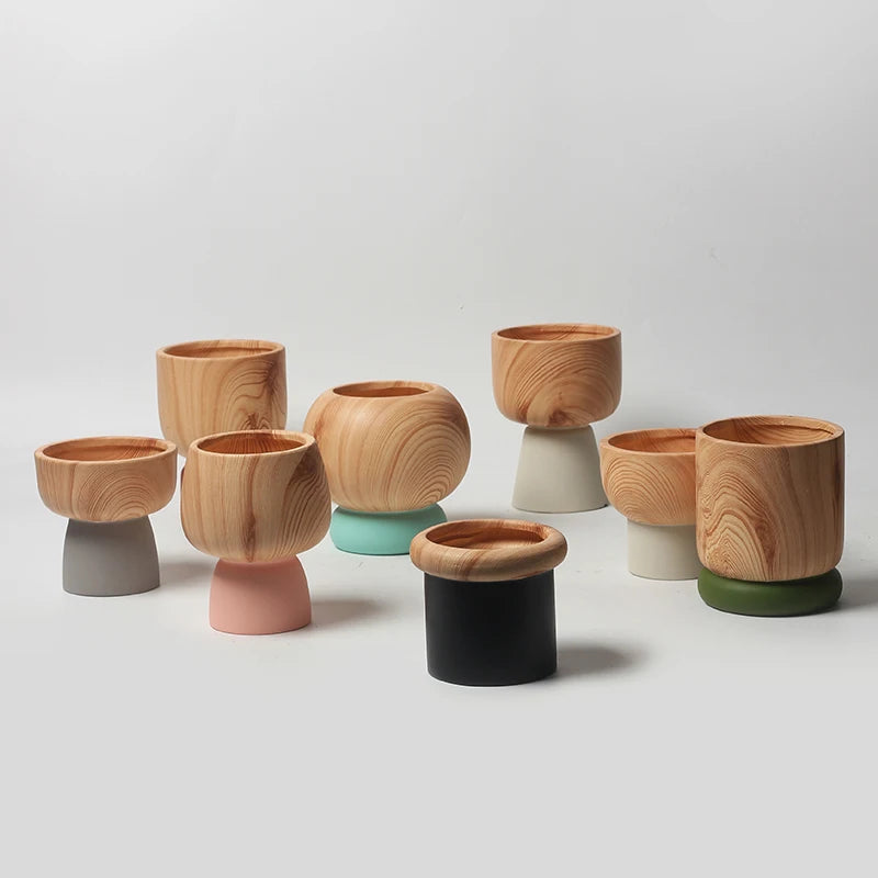 Bring timeless Nordic charm to your home with these Colorful Retro Wood-Grain Flower Pots.