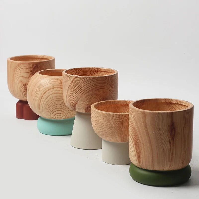 Colorful Nordic Flower Pots – Retro Wood Grain Painted Planters for Succulents, Orchids & Indoor Plants